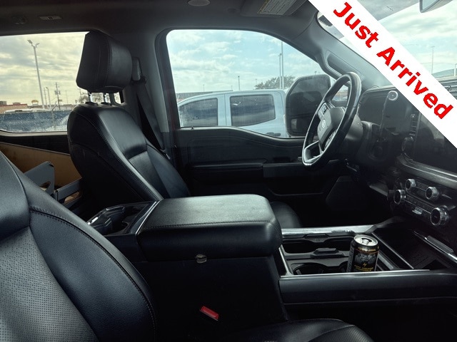 This vehicle contains the following features and options: Chrome Package (6" Angular Bright Anodized Step Bars, Chrome Door Handles, Chrome Exhaust Tip, Unique Chrome Mirror Caps, and Wheels: 20" Chrome PVD Aluminum), FX4 Off-Road Package (Hill Descent Control, Off-Road Specifically Tuned Shock Absorbers, and Unique FX4 Off-Road Box Decal), GVWR: 12,400 lb Payload Package, Lariat Ultimate Package (4-Way Adjustable Headrests, Front Sensing System, Head-Up Display, Power-Deployable Running Boards, Radio: B&O Unleashed Sound System by Bang & Olufsen, SiriusXM Radio w/360L, SYNC 4 w/Enhanced Voice Recognition, Tailgate Step & Handle, Upfitter Switches (6), and Wireless Charging Pad), Order Code 618A, Tow Technology Package (Intelligent Adaptive Cruise Control w/Stop-and-Go, Lane Keeping Assist, Pro Trailer Backup Assist, and Pro Trailer Hitch Assist), 410 Amp Dual Alternators, Electronic-Locking w/3.31 Axle Ratio, Engine Block Heater, 190 Amp Alternator, 4-Wheel Disc Brakes, 8 Speakers, ABS brakes, Adjustable pedals, Air Conditioning, All-Weather Floor Mats, Alloy wheels, AM/FM radio: SiriusXM with 360L, Auto High-beam Headlights, Auto tilt-away steering wheel, Auto-dimming Rear-View mirror, Automatic High Beam, Automatic temperature control, BLIS w/Cross-Traffic Alert, Brake assist, Bumpers: chrome, Compass, Delay-off headlights, Driver door bin, Driver vanity mirror, Dual 68 AH/65 AGM Batteries, Dual front impact airbags, Dual front side impact airbags, Electronic Stability Control, Emergency communication system: SYNC 4 911 Assist, Exterior Parking Camera Rear, Flow-Through Console, Front & Rear Wheel Well Liners (Pre-Installed), Front anti-roll bar, Front Bucket Seats, Front Center Armrest, Front dual zone A/C, Front fog lights, Front Leather-Trimmed 40/Console/40 Seats, Front License Plate Bracket, Front reading lights, Fully automatic headlights, Garage door transmitter, Heated door mirrors, Heated front seats, Heated rear seats, Heated steering wheel, Illuminated entry, Lane-Keeping System, Leather steering wheel, LED Roof Clearance Lights, Low tire pressure warning, Memory seat, Navigation system: Connected Navigation, Outside temperature display, Overhead airbag, Overhead console, Panic alarm, Passenger door bin, Passenger vanity mirror, Pedal memory, Post-Collision Braking, Power door mirrors, Power driver seat, Power passenger seat, Power steering, Power windows, Pre-Collision
