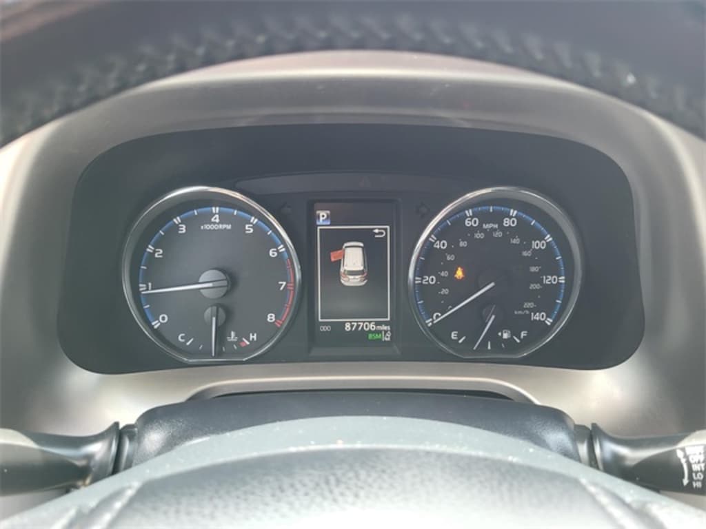 This vehicle contains the following features and options: ABS brakes, Active Cruise Control, Alloy wheels, Compass, Electronic Stability Control, Front dual zone A/C, Heated door mirrors, Heated front seats, Heated Front Sport Seats, Illuminated entry, Low tire pressure warning, Power Liftgate, Power moonroof, Remote keyless entry, Traction control, 3.815 Axle Ratio, 4-Wheel Disc Brakes, 6 Speakers, Air Conditioning, AM/FM radio: SiriusXM, Auto High-beam Headlights, Auto-dimming Rear-View mirror, Automatic temperature control, Brake assist, Bumpers: body-color, Chrome wheels, Driver door bin, Driver vanity mirror, Dual front impact airbags, Dual front side impact airbags, Exterior Parking Camera Rear, Four wheel independent suspension, Front anti-roll bar, Front Bucket Seats, Front Center Armrest, Front fog lights, Front reading lights, Fully automatic headlights, Garage door transmitter: HomeLink, Knee airbag, Leather Shift Knob, Leather steering wheel, Memory seat, Occupant sensing airbag, Outside temperature display, Overhead airbag, Overhead console, Panic alarm, Passenger door bin, Passenger vanity mirror, Power door mirrors, Power driver seat, Power steering, Power windows, Radio data system, Radio: Entune Premium Audio with Navigation, Rear anti-roll bar, Rear seat center armrest, Rear window defroster, Rear window wiper, Roof rack, SofTex Seat Trim, Speed control, Speed-sensing steering, Split folding rear seat, Spoiler, Steering wheel mounted audio controls, Tachometer, Telescoping steering wheel, Tilt steering wheel, Trip computer, Turn signal indicator mirrors, Variably intermittent wipers, and Wheels: 18" Alloy ALM.