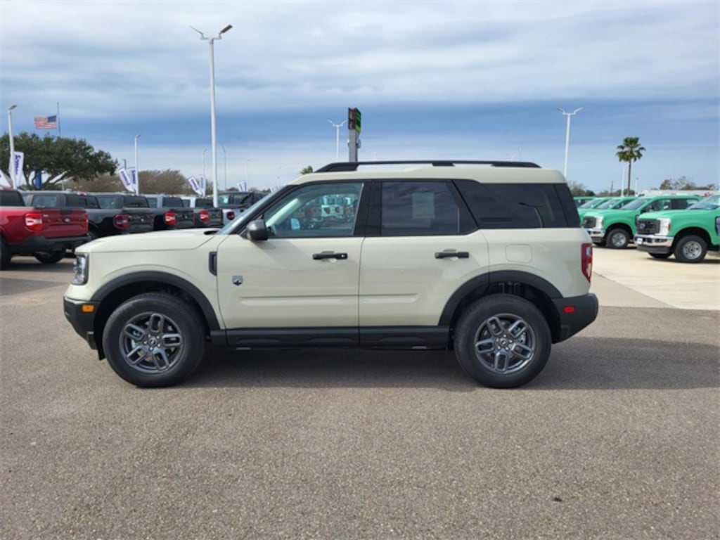 Desert Sand 2025 Ford Bronco Sport Big Bend 4WD 8-Speed Automatic 1.5L EcoBoost Convenience Package, Equipment Group 200A, Front Driver/Passenger Seat Back Map Pockets, Heated 8-Way Power Driver's Seat, LED Fog Lamps, Premium Wrapped Steering Wheel, Universal Garage Door Opener (UGDO), Wheels: 17" Carbonized Gray-Painted Aluminum.