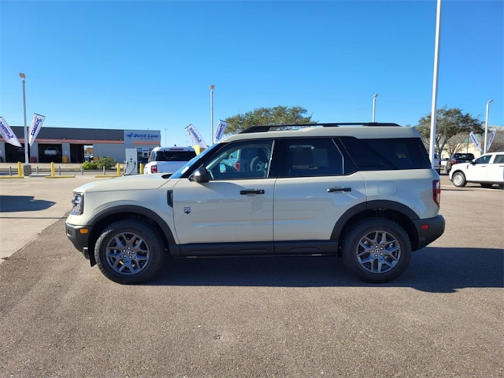 Desert Sand 2025 Ford Bronco Sport Big Bend 4WD 8-Speed Automatic 1.5L EcoBoost Convenience Package, Equipment Group 200A, Front Driver/Passenger Seat Back Map Pockets, Heated 8-Way Power Driver's Seat, LED Fog Lamps, Premium Wrapped Steering Wheel, Universal Garage Door Opener (UGDO), Wheels: 17" Carbonized Gray-Painted Aluminum.
