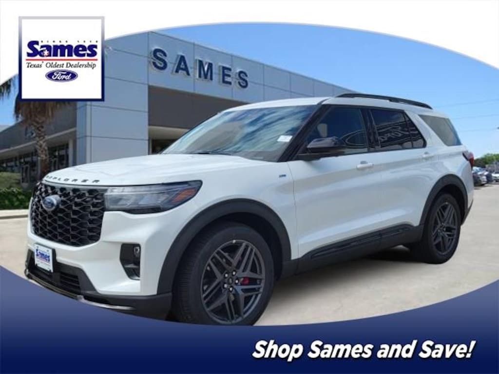 Star White Metallic Tri-Coat 2025 Ford Explorer ST-Line RWD 10-Speed Automatic 2.3L EcoBoost I-4 110V/150W AC Power Outlet, 2nd Row Heated Seats, Ambient Lighting, Auto-Dimming Interior Rear-View Mirror, Equipment Group 300A Standard Package, Memory Driver's Seat, Performance Brakes, Power-Folding Sideview Mirrors w/Autofold, Premium Package, Rain-Sensing Wipers (Front Only), Red Painted Perf Front & Rear Brake Calipers, ST-Line Street Pack, Wheels: 21" Magnetite-Painted Aluminum, Wireless Charging Pad.
