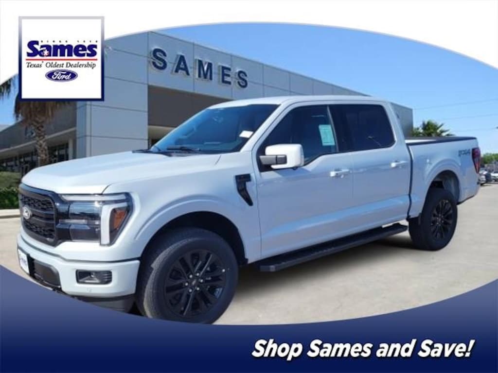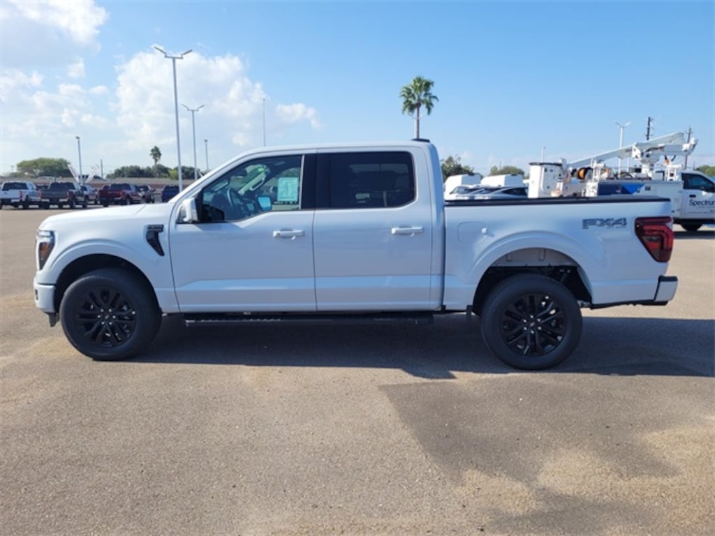 Space White Metallic 2025 Ford F-150 Lariat 4WD 10-Speed Automatic 5.0L V8 4x4 FX4 Off-Road Bodyside Decal, 6" Angular Bright Anodized Step Bar, ActiveX Trimmed Bucket Seats (B), Black Exterior Badging, Black Grille, Black Taillamp Bezels, Body-Color Front & Rear Bumpers, Body-Color Skull Caps & Door Handles, Dark Interior Appliques, Electronic Locking w/3.31 Axle Ratio, Equipment Group 501A Mid, FX4 Off-Road Package, Gray Box Side Decal, GVWR: 7,100 lbs Payload Package, Hill Descent Control, Illuminated Driver & Passenger Visors, Lariat Black Appearance Package, Matte Black Tailgate F-150 Decal, Monotube Rear Shocks, Off-Road Tuned Front Shock Absorbers, Power-Sliding Rear Window, Rock Crawl Mode, Tray Style Floor Liner w/o Carpet Mats, Wheels: 20" Chrome-Like PVD.