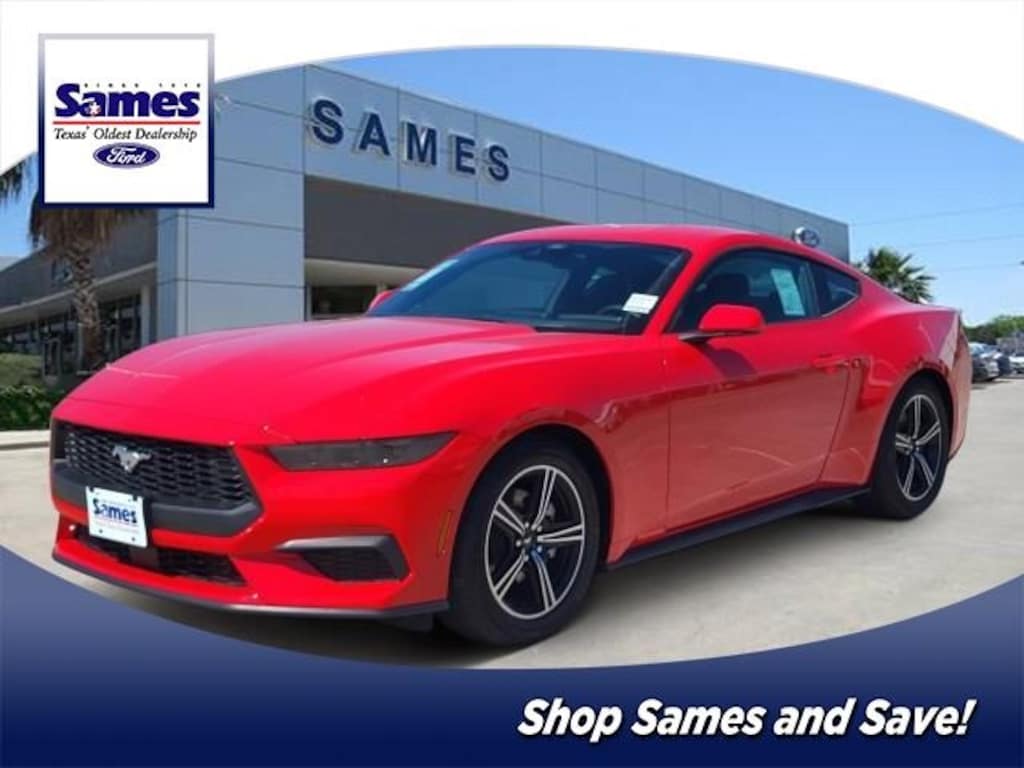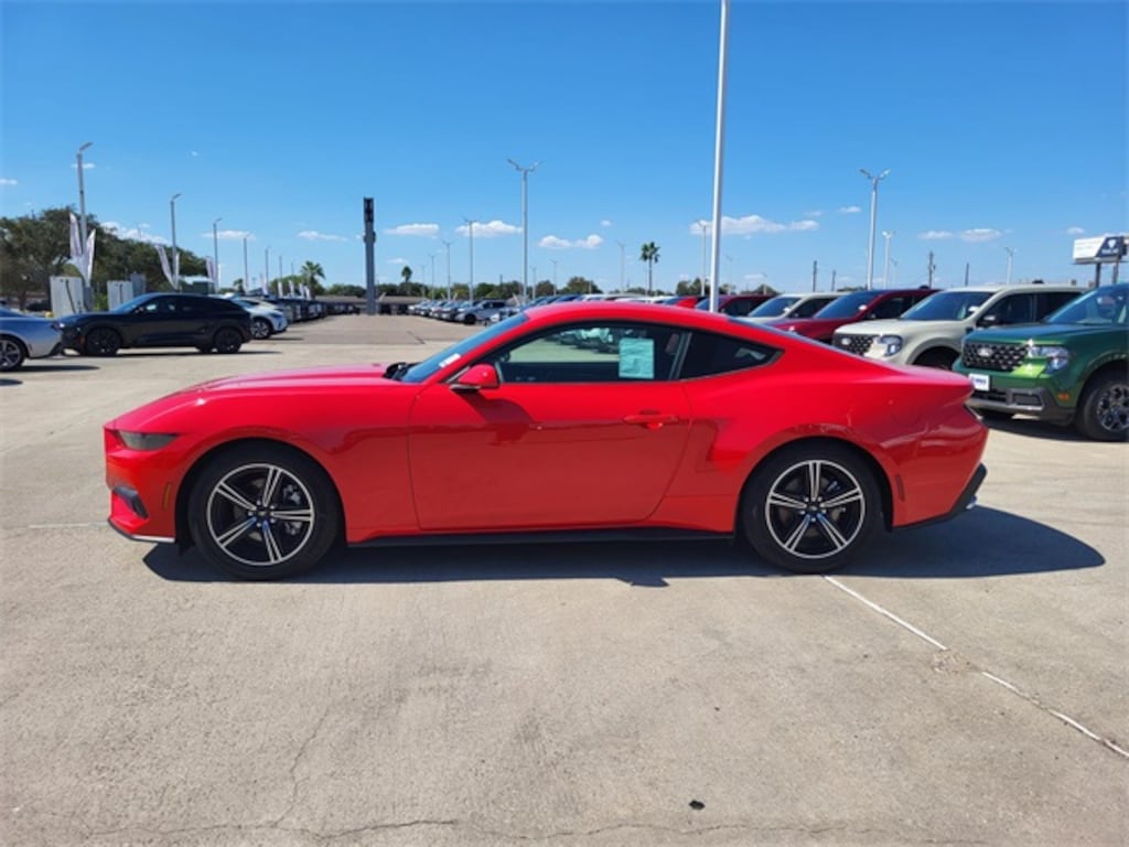 Race Red 2025 Ford Mustang EcoBoost RWD 10-Speed Automatic EcoBoost 2.3L I4 GTDi DOHC Turbocharged VCT 3.15 Ration Limited Slip Axle, Equipment Group 100A Standard Package, Wheels: 18" x 8" Machined-Face Aluminum.