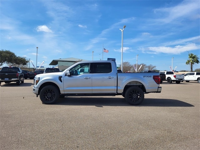 Iconic Silver Metallic 2026 Ford F-150 Lariat 4WD 10-Speed Automatic 5.0L V8 :Extended Range Fuel Tank 36 GAL, 4x4 FX4 Off-Road Bodyside Decal, 6" Angular Bright Anodized Step Bar, ActiveX Trimmed Bucket Seats, Black Exterior Badging, Black Grille, Black Taillamp Bezels, Body-Color Front and Rear Bumpers, Dark Interior Appliques, Driver's Side SecuriCode Keyless-Entry Keypad, Electronic Locking with 3.31 Axle Ratio, Equipment Group 501A Mid, Ford Connectivity Package (1-Year Included), FX4 Off-Road Package, Gray Box Side Decal, GVWR: 7,100 lbs Payload Package, Hill Descent Control, Illuminated Driver and Passenger Visors, Integrated Trailer Brake Controller, Lariat Black Appearance Package, Matte Black Tailgate F-150 Decal, Monotube Rear Shocks, Off-Road Tuned Front Shock Absorbers, Power-Adjustable Pedals with Memory, Power-Sliding Rear Window, Radio: B&O Sound System by Bang and Olufsen, Rock Crawl Mode, SYNC 4 with Enhanced Voice Recognition, Tow/Haul Package, Tray Style Floor Liner Without Carpet Mats, Wheels: 20" Gloss Black Painted Aluminum.