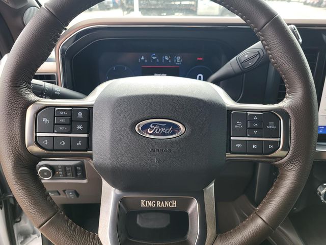 The King Ranch interior is a true testament to luxury and craftsmanship, with its unique leather seating, flow-through console, and premium materials throughout. The twin-panel power moonroof and 20-inch bright machined aluminum wheels add a touch of elegance and style to this already impressive package.