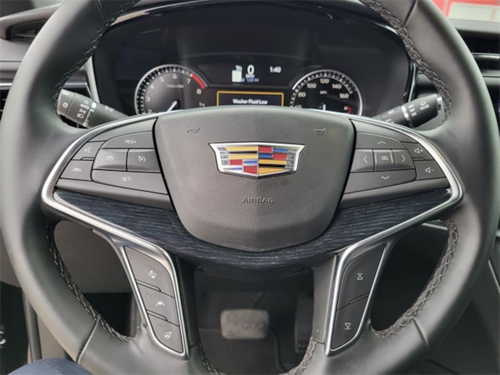 This vehicle contains the following features and options: Premium Luxury Package 1SC (Automatic Dual-Zone Climate Control, Automatic Emergency Braking, Dual Driver Info Center Display Gauge Cluster, Front & Rear Park Assist, HD Rear Vision Camera, Inside Rear-View Auto-Dimming Mirror, and Teen Driver), Radio: Cadillac User Experience w/Embedded Nav (Bose Performance Series 14-Speaker System, SiriusXM w/360L Trial Subscription, Wireless Apple CarPlay/Wireless Android Auto, and Wireless Phone Charging), 14 Speakers, 155 Amp Alternator, 2-Way Power Driver Lumbar Control Seat Adjuster, 2-Way Power Passenger Lumbar Control Seat Adjuster, 4-Wheel Disc Brakes, 4-Wheel Independent Suspension, ABS brakes, Air Conditioning, Alloy wheels, AM/FM radio: SiriusXM, Audio memory, Auto High-beam Headlights, Auto-dimming door mirrors, Auto-dimming Rear-View mirror, Automatic Stop/Start w/Disable, Automatic temperature control, Bodyside moldings, Brake assist, Bumpers: body-color, Compass, Delay-off headlights, Deleted 3 Years of OnStar Digital Services, Driver door bin, Driver vanity mirror, Dual front impact airbags, Dual front side impact airbags, Electronic Stability Control, Emergency communication system: OnStar and Cadillac connected services capable, Four wheel independent suspension, Front anti-roll bar, Front Bucket Seats, Front Center Armrest, Front dual zone A/C, Front License Plate Bracket, Front reading lights, Fully automatic headlights, Garage door transmitter, Genuine wood dashboard insert, Genuine wood door panel insert, Heated door mirrors, Heated Driver & Front Passenger Seats, Heated front seats, Heated steering wheel, Illuminated entry, Knee airbag, Leather Seating Surfaces w/Mini Perforated Inserts, Low tire pressure warning, Memory seat, Navigation System, Occupant sensing airbag, Outside temperature display, Overhead airbag, Overhead console, Panic alarm, Passenger door bin, Passenger vanity mirror, Power door mirrors, Power driver seat, Power Liftgate, Power moonroof: UltraView, Power passenger seat, Power steering, Power windows, Radio data system, Rain sensing wipers, Rear anti-roll bar, Rear reading lights, Rear seat center armrest, Rear window defroster, Rear window wiper, Remote keyless entry, Security system, Speed control, Speed-sensing steering, Split folding rear seat, Spoiler, Steering wheel memory, Steering wheel mounted audio controls, Tachometer, Telescoping steering wheel, Tilt steering wheel, Traction control, Trip computer, Turn signal indicator mirrors, Variably intermittent wipers, Voltmeter, and Wheels: 20" 6-Split Spoke Alloy.