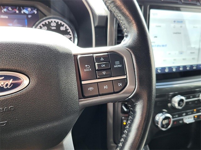 This vehicle contains the following features and options: Equipment Group 302A High (10-Way Power Driver & Passenger Seats, 8" Productivity Screen in Instrument Cluster, Auto-Dimming Rear-View Mirror, Class IV Trailer Hitch Receiver, Dual Zone Automatic Temperature Control, Heated Front Seats, Intelligent Access w/Push Button Start, Leather-Wrapped Steering Wheel, LED Box Lighting w/Zone Lighting, LED Reflector Headlamps, LED Sideview Mirror Spotlights, Onboard 400W Outlet, Power Glass Heated Sideview Mirrors, Radio: AM/FM SiriusXM w/360L, Rear Under-Seat Storage, Remote Start System w/Remote Tailgate Release, SecuriCode Drivers Side Keyless-Entry Keypad, and SYNC 4 w/Enhanced Voice Recognition), GVWR: 7,050 lbs Payload Package, XLT Chrome Appearance Package (2-Bar Style Grille w/Chrome 2 Minor Bars, Chrome Door & Tailgate Handles w/Body-Color Bezel, Chrome Single-Tip Exhaust, and Chrome Step Bars), XLT Sport Appearance Package (Accent-Color Step Bars, Black 2-Bar Style Grille w/Black Surround/Accents, Body-Color Door & Tailgate Handles, Body-Color Front & Rear Bumpers, Box Side Decals, Unique Sport Cloth 40/Console/40 Front-Seats, and Wheels: 18" 6-Spoke Machined Aluminum), Electronic Locking w/3.31 Axle Ratio, 4-Wheel Disc Brakes, 6 Speakers, ABS brakes, Air Conditioning, Alloy wheels, AM/FM radio, Auto High-beam Headlights, Auto Start-Stop Removal, Brake assist, Bumpers: chrome, Cloth 40/20/40 Front Seat, Compass, Delay-off headlights, Driver door bin, Driver vanity mirror, Dual front impact airbags, Dual front side impact airbags, Electronic Stability Control, Emergency communication system: SYNC 4 911 Assist, Exterior Parking Camera Rear, Front anti-roll bar, Front Center Armrest w/Storage, Front fog lights, Front License Plate Bracket, Front reading lights, Front wheel independent suspension, Fully automatic headlights, Heated door mirrors, Illuminated entry, Low tire pressure warning, Occupant sensing airbag, Outside temperature display, Overhead airbag, Overhead console, Panic alarm, Passenger door bin, Passenger vanity mirror, Power door mirrors, Power steering, Power windows, Power-Adjustable Pedals, Radio data system, Radio: AM/FM Stereo w/6 Speakers, Rear reading lights, Rear step bumper, Rear window defroster, Remote keyless entry, Security system, Speed contro