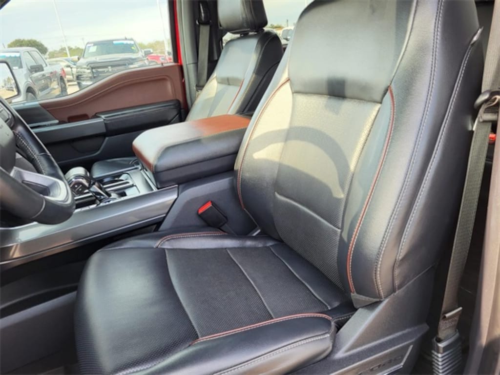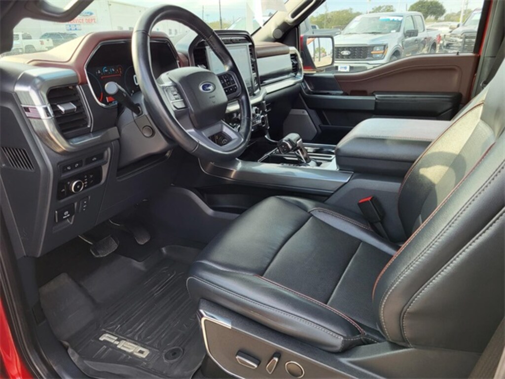 This vehicle contains the following features and options: Bed Utility Package (BoxLink, LED Box Lighting, Power Tailgate, and Tailgate Step w/Tailgate Work Surface), Equipment Group 502A High (Wireless Charging Pad), Ford Co-Pilot360 Assist 2.0 (Connected Built-In Navigation, Evasive Steering Assist, Intelligent Adaptive Cruise Control w/Stop & Go, Intersection Assist, and Speed Sign Recognition), FX4 Off-Road Package, Lariat Sport Appearance Package (Accent-Color Angular Step Bars, Body-Color Front & Rear Bumpers, Box Side Decals, Chrome Single-Tip Exhaust, and Dark 2-Bar & 1 Minor Bar Style Grille), Trailer Tow Package (Class IV Trailer Hitch Receiver, Integrated Trailer Brake Controller, and Pro Trailer Backup Assist & Pro Trailer Hitch Assist), 360 Degree Camera, 4-Wheel Disc Brakes, 8 Speakers, ABS brakes, Adjustable pedals, Air Conditioning, Alloy wheels, AM/FM radio: SiriusXM with 360L, Auto High-beam Headlights, Auto-dimming door mirrors, Auto-dimming Rear-View mirror, Automatic temperature control, Brake assist, Bumpers: chrome, Center High-Mounted Stop Lamp CHMSL Camera Removal, Chrome wheels, Compass, Delay-off headlights, Driver door bin, Driver vanity mirror, Dual front impact airbags, Dual front side impact airbags, Electronic Stability Control, Emergency communication system: SYNC 4 911 Assist, Extended Range 36 Gallon Fuel Tank, Exterior Parking Camera Rear, Front anti-roll bar, Front Bucket Seats, Front Center Armrest, Front dual zone A/C, Front fog lights, Front reading lights, Front wheel independent suspension, Fully automatic headlights, Garage door transmitter, Heated door mirrors, Heated front seats, Heated steering wheel, Illuminated entry, Inclination/Intrusion Sensor Removal, Leather-Trimmed Bucket Seats, LED Sideview Mirror Spotlights, Low tire pressure warning, Memory seat, Occupant sensing airbag, Outside temperature display, Overhead airbag, Overhead console, Panic alarm, Passenger door bin, Passenger vanity mirror, Pedal memory, Power door mirrors, Power driver seat, Power passenger seat, Power steering, Power windows, Radio data system, Radio: B&O Sound System by Bang & Olufsen, Rear reading lights, Rear seat center armrest, Rear step bumper, Rear window defroster, Remote keyless entry, Security system, Speed control, Speed-sensing steering, Split folding rear seat, Steering Wheel Heat Removal (DISC), Steering wheel mounted audio controls, SYNC 4 w/Enhanced Voice Recognition, Tachometer, Telescoping steering wheel, Tilt steering wheel, Traction control, Tray Style Floor Liner (47W), Trip computer, Turn signal indicator mirrors, Twin Panel Moonroof, Variably intermittent wipers, Ventilated front seats, Voltmeter, Wheels: 18" Chrome-Like PVD, and Wheels: 20" 6-Spoke Dark Alloy Painted Aluminum.