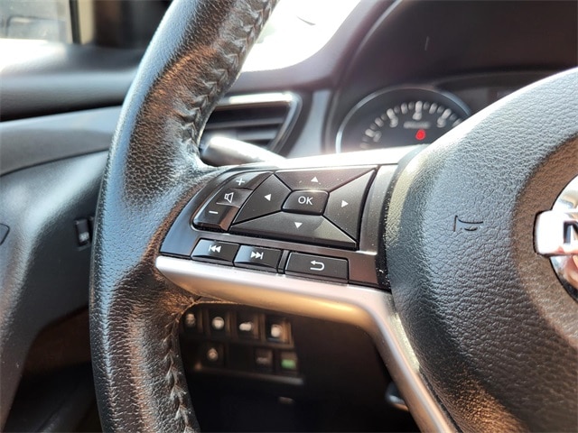 This vehicle contains the following features and options: Premium Package (18" Aluminum Alloy Wheels, Electronic Parking Brake, Heated Leather-Wrapped Steering Wheel, Intelligent Aroundview Monitor (I-AVM), Intelligent Cruise Control, Memory Driver Seat & Outside Mirrors, ProPILOT Assist, Radio: AM/FM/CD/AUX NissanConnect w/Navigation, and Steering Assist), 17" Aluminum Alloy Wheels, 4-Wheel Disc Brakes, 6 Speakers, 6.386 Axle Ratio, ABS brakes, Air Conditioning, Alloy wheels, AM/FM radio: SiriusXM, Anti-whiplash front head restraints, Auto High-beam Headlights, Automatic temperature control, Black Splash Guards (Set of 4), Blind Spot Warning, Brake assist, Bumpers: body-color, CD player, Chrome Rear Bumper Protector, Cloth Seat Trim, Delay-off headlights, Driver door bin, Driver vanity mirror, Dual front impact airbags, Dual front side impact airbags, Electronic Stability Control, First Aid Kit, Floor Mats & 2-PC Cargo Area Protector, Four wheel independent suspension, Front anti-roll bar, Front Bucket Seats, Front Center Armrest w/Storage, Front dual zone A/C, Front reading lights, Fully automatic headlights, Heated door mirrors, Heated Front Bucket Seats, Heated front seats, Illuminated entry, Leather Shift Knob, Low tire pressure warning, NissanConnect featuring Apple CarPlay and Android Auto, Occupant sensing airbag, Outside temperature display, Overhead airbag, Overhead console, Panic alarm, Passenger door bin, Passenger vanity mirror, Power door mirrors, Power driver seat, Power Liftgate, Power steering, Power windows, Radio data system, Radio: AM/FM/CD/AUX, Rear anti-roll bar, Rear Parking Sensors, Rear seat center armrest, Rear USB Ports, Rear window defroster, Rear window wiper, Remote keyless entry, Roof rack: rails only, Security system, Speed control, Speed-sensing steering, Split folding rear seat, Spoiler, Steering wheel mounted audio controls, Tachometer, Telescoping steering wheel, Tilt steering wheel, Traction control, Trip computer, Turn signal indicator mirrors, and Variably intermittent wipers.