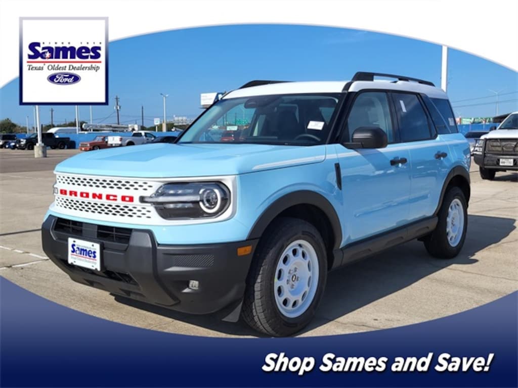 Robins Egg Blue 2025 Ford Bronco Sport Heritage 4WD 8-Speed Automatic 1.5L EcoBoost Convenience Package, Equipment Group 250A, Front Driver/Passenger Seat Back Map Pockets, Heated 8-Way Power Driver's Seat, LED Fog Lamps, Premium Wrapped Steering Wheel, Universal Garage Door Opener (UGDO).