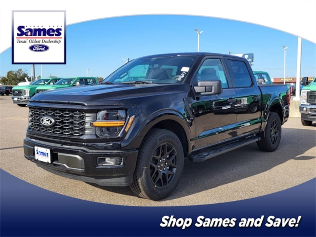 Agate Black Metallic 2025 Ford F-150 STX RWD 10-Speed Automatic 2.7L V6 EcoBoost 20" Wheels, 6" Black Running Boards, Black Exterior Badging, Equipment Group 200A Mid, GVWR: 6,426 lbs Payload Package, LED Fog Lamps w/LED Cornering Lamp, STX Black Appearance Package, Unique Sport Cloth 40/Console/40 Front-Seats, Wheels: 20" Dark Gray w/Machined Aluminum, Wheels: 20" Gloss Black.