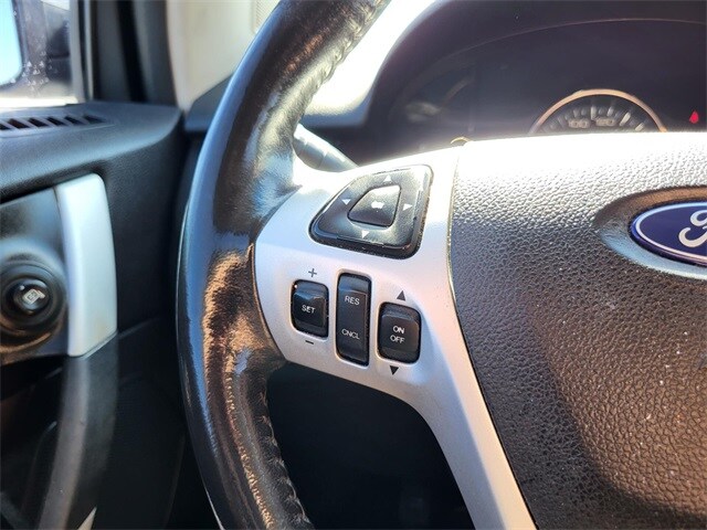 This vehicle contains the following features and options: Driver Entry Package (Intelligent Access w/Push Button Start, Perimeter Alarm, Power Liftgate, and Remote Start), Equipment Group 300A, Navigation System, 12 Speakers, 18" Chrome-Clad Wheels, 3.16 Axle Ratio, 4-Wheel Disc Brakes, ABS brakes, Air Conditioning, Alloy wheels, AM/FM radio: SiriusXM, Auto-dimming Rear-View mirror, Automatic temperature control, Brake assist, Bumpers: body-color, CD player, Compass, Delay-off headlights, Driver door bin, Driver vanity mirror, Dual front impact airbags, Dual front side impact airbags, Electronic Stability Control, Exterior Parking Camera Rear, Four wheel independent suspension, Front anti-roll bar, Front Bucket Seats, Front Center Armrest w/Storage, Front dual zone A/C, Front reading lights, Fully automatic headlights, Garage door transmitter: HomeLink, Heated door mirrors, Heated front seats, Illuminated entry, Leather-Trimmed Heated Bucket Seats, Low tire pressure warning, Memory seat, Occupant sensing airbag, Outside temperature display, Overhead airbag, Overhead console, Panic alarm, Passenger door bin, Passenger vanity mirror, Power door mirrors, Power driver seat, Power passenger seat, Power steering, Power windows, Premium audio system: Sony, Radio data system, Radio: Sony AM/FM Stereo w/HD Radio/MyFord Touch, Rear anti-roll bar, Rear Parking Sensors, Rear reading lights, Rear seat center armrest, Rear window defroster, Rear window wiper, Remote keyless entry, Speed control, Speed-Sensitive Wipers, Split folding rear seat, Spoiler, Steering wheel mounted audio controls, Tachometer, Telescoping steering wheel, Tilt steering wheel, Traction control, Trip computer, and Variably intermittent wipers.