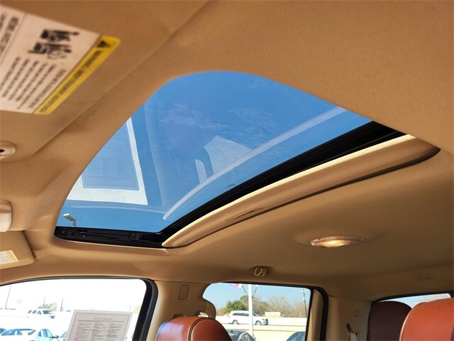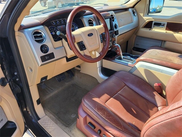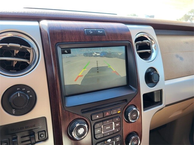 This vehicle contains the following features and options: Equipment Group 600A, GVWR: 7,200 lbs Payload Package, King Ranch Luxury Package (High-Intensity Discharge Headlamps, Navigation, Overhead Console w/Single Storage Bin, Power Moonroof, and Tailgate Step), Off-Road Package (4x4 Off-Road Decal, Electronic Locking w/3.55 Axle Ratio, Front & Rear Off-Road Tuned Shock Absorbers, and Hill Descent Control), 20" Premium Painted Aluminum Wheels, 10 Speakers, 18" 7-Spoke Aluminum w/King Ranch Logo Wheels, 4-Wheel Disc Brakes, ABS brakes, Adjustable pedals, Air Conditioning, Alloy wheels, AM/FM radio: SiriusXM, Auto tilt-away steering wheel, Auto-dimming door mirrors, Auto-dimming Rear-View mirror, Automatic temperature control, CD player, Compass, Delay-off headlights, Driver door bin, Driver vanity mirror, Dual front impact airbags, Dual front side impact airbags, DVD-Audio, Electronic Stability Control, Exterior Parking Camera Rear, Front anti-roll bar, Front Bucket Seats, Front Center Armrest, Front dual zone A/C, Front fog lights, Front License Plate Bracket, Front reading lights, Front wheel independent suspension, Fully automatic headlights, Garage door transmitter, Heated door mirrors, Heated front seats, Heated rear seats, Illuminated entry, King Ranch Chaparral Leather Bucket Seats, Leather steering wheel, Low tire pressure warning, Memory seat, Occupant sensing airbag, Outside temperature display, Overhead airbag, Overhead console, Panic alarm, Passenger door bin, Passenger vanity mirror, Pedal memory, Power door mirrors, Power driver seat, Power passenger seat, Power steering, Power windows, Premium audio system: Sony, Radio data system, Radio: Sony Single-CD w/HD, Rear Parking Sensors, Rear reading lights, Rear seat center armrest, Rear step bumper, Rear window defroster, Remote keyless entry, Security system, SiriusXM Satellite Radio, Speed control, Speed-sensing steering, Split folding rear seat, Steering wheel memory, Steering wheel mounted audio controls, SYNC Voice Activated Communication & Entertainment, SYNC w/MyFord Touch & SYNC Services, Tachometer, Telescoping steering wheel, Tilt steering wheel, Traction control, Trailer Brake Controller, Trip computer, Turn signal indicator mirrors, Variably intermittent wipers, and Ventilated front seats.